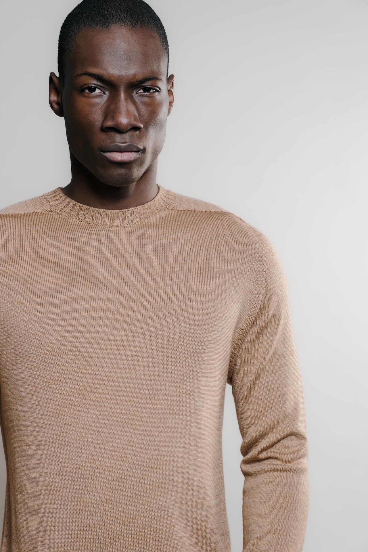 Il nous a fallu près d’un an pour créer ce pull. Tricoté en intégral, sans aucune couture, il offre une pureté et une douceur incomparables.