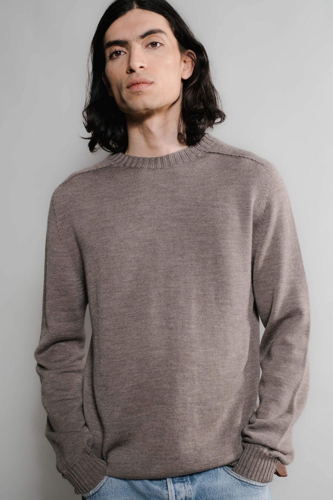Il nous a fallu près d’un an pour créer ce pull. Tricoté en intégral, sans aucune couture, il offre une pureté et une douceur incomparables.